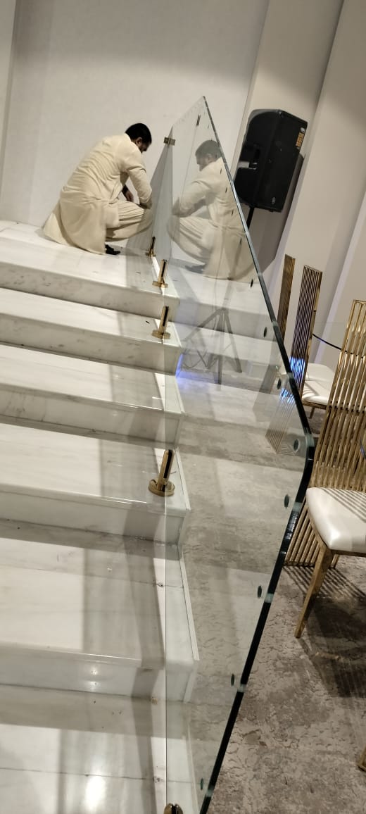 نحن متخصصون في تصميم وتركيب الدرابزينات الزجاجية المخصصة التي تضيف لمسة من الأناقة مع توفير الوظائف والأمان اللازمين للسلالم والشرفات والمدرجات والمزيد. مع التركيز على جودة الصنعة والتصميم المبتكر ورضا العملاء، نحن شريكك الموثوق به في تحويل الممتلكات الخاصة بك إلى عرض مذهل للهندسة المعمارية الحديثة.